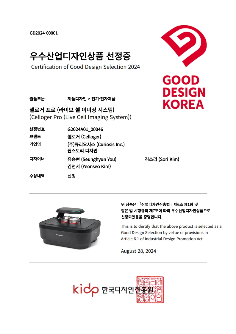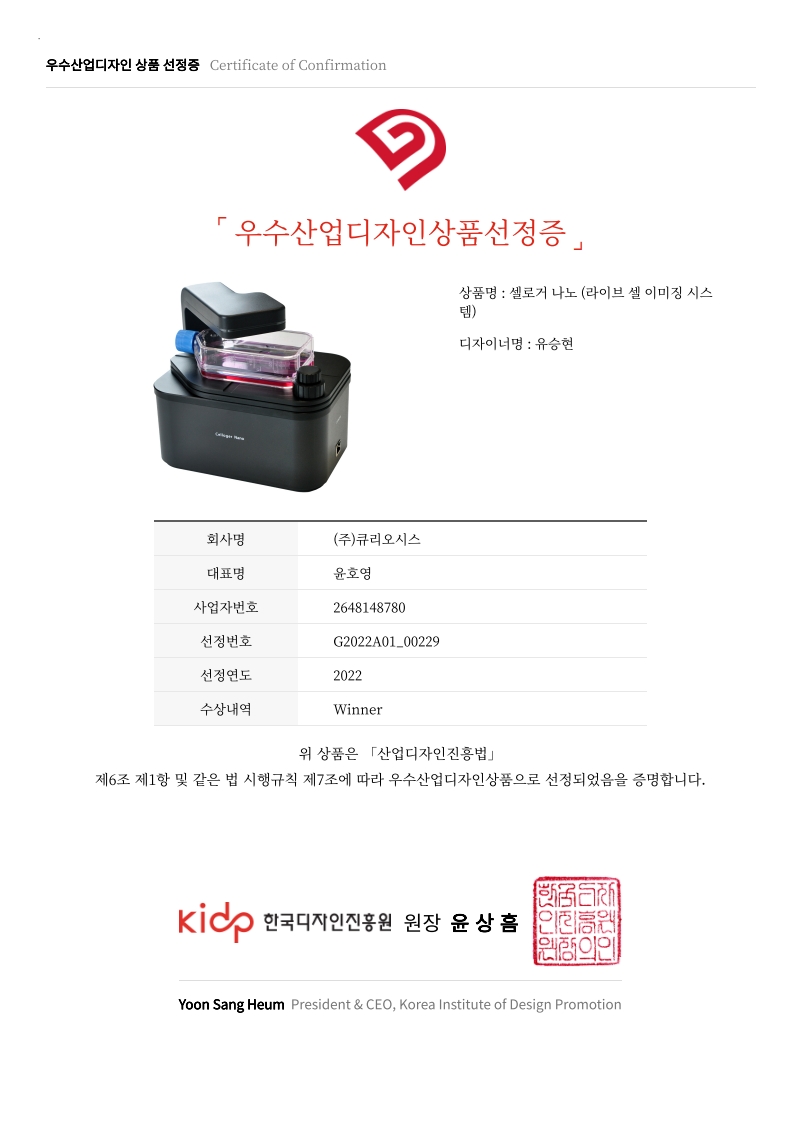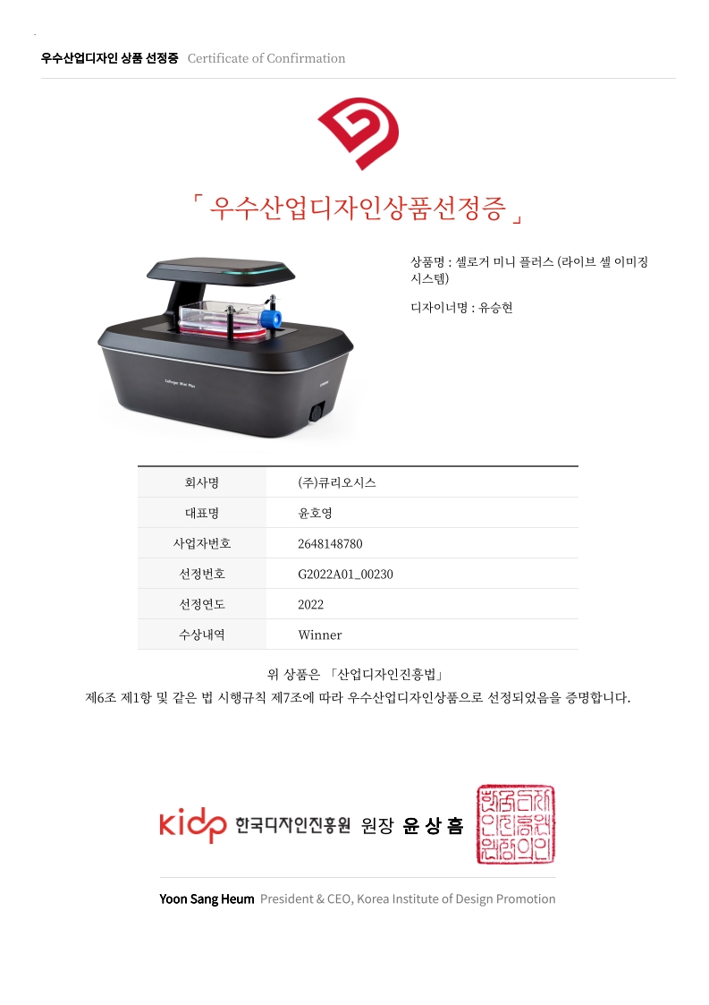 기업인증서기술/IP디자인 기업부설연구소 벤처기업인증 ISO 13485:2016 ISO 9001:2015 가족친화인증서 의료기기 제조업 허가증 소재 부품 장비 전문기업확인서 신기술적용제품 확인서 기술혁신형 중소기업 (Inno-Biz) 확인서 경영혁신형 중소기업 (Main-Biz) 확인서 체외진단의료기기 제조업 허가증 지식재산 경영인증서 기업부설연구소 인정서(용인) 직무발명보상우수기업 인증서 Hi-Seoul 기업 지정서 글로벌 IP스타기업 지정서 NEP 신제품 인증 (MSP®-320) NEP 신제품 인증 (Cellpuri®) 서울시 워라밸 포인트 기업 증서 우수 기업부설연구소 지정서 백만불 수출의 탑 이백만불 수출의 탑 대한민국 일·생활 균형 우수기업 선정서 벤처기업확인서 기족친화인증서 기업부설연구소 서울형 강소기업 확인서 ISO 9001:2015 ISO 13485:2016 Certificate of GMP 의료기기 제조업 허가증 의료기기 제조 인증서 소재,부품,장비 전문기업확인서 NET 신기술 인증(Cellpuri®) 신기술적용제품 확인서 기술혁신형 중소기업 (Inno-Biz) 확인서 경영혁신형 중소기업 (Main-Biz) 확인서 체외진단의료기기 제조 신고증명(MSP®-320) 지식재산 경영인증서 직무발명보상우수기업 인증서 Hi-Seoul 기업 지정서 NEP 신제품 인증(MSP®-320) 글로벌 IP스타기업 지정 확인서 2020 제14회 대한민국 우수특허 대상 2022 한국바이오칩학회 기술상 2022 ICT 특허경영대상 특허청장상 2022 신기술실용화 촉진대회 국무총리 표창 2023 제15회 중소기업 우수 지식재산경영인대회 최우수상 2023 세계일류상품인증서 2023 R&D 100 Awards Winner(Cellpuri®) 2023 R&D 100 Awards Winner(Celloger® Mini Plus) NEP 신제품 인증(MSP®-320) 2024 범부처전주기의료기기연구개발사업 10대 대표과제(MSP®-320) 2024 제59회 발명의 날 산업통상자원부장관 표창 2024 제59회 발명의 날 산업통상자원부장관 표창 2024 제59회 발명의 날 산업통상자원부장관 표창 2024 제71차 대한민국 엔지니어상 2024 바이오미래포럼 과학기술정보통신부 장관 표창 2024 37주차 장영실상 2024 R&D 100 Awards Winner 2024년 산업통상자원부 장관표창 2024 무역의 날 산업통상자원부장관 표창 2025 CES Innovation Award 혁신상 (MSP®-320) 2025 CES Innovation Award 혁신상 (Cellpuri® Series) 2025 과학기술진흥유공 장관표창 제60회 발명의 날 한국발명진흥회 대통령표창 제72차 대한민국 엔지니어상 2025 중소기업 기술·경영 혁신대전 장관표창 2025 세계일류상품인증 2025 바이오산업의 날 산업통상부 장관표창 2025 대한민국 발명특허대전 산업통상부 장관상 2025 범부처 의료기기 R&D 유공 과학기술정보통신부 장관표창 2025 한국생물공학회 혁신기술대상 2024년 산업기술진흥유공 신기술실용화진흥 산업통상자원부 장관표창 백만불 수출의 탑 2023 R&D 100 Awards Winner(Cellpuri®) 2023 R&D 100 Awards Winner(Celloger® Mini Plus) 세계일류상품인증서 2022 한국바이오칩학회 기술상 2022 ICT 특허경영대상 특허청장상 2023 제15회 중소기업 우수 지식재산경영인대회 최우수상 2022 신기술실용화 촉진대회 국무총리 표창 2020 제14회 대한민국 우수특허 대상 2019 Good Design Korea (Celloger® Mini) 2020 Red Dot Winner (Celloger® Mini) 2020 Good Design Award (Celloger® Mini) 2021 iF Design Award (Celloger® Mini) 2021 Good Design Award (Celloger® Nano) 2022 Red Dot Winner (Celloger® Nano) 2022 iF GOLD AWARD (Celloger® Nano) 2022 Good Design Korea (Celloger® Nano) 2022 Red Dot Winner (Celloger® Mini Plus) 2022 iF Design Award (Celloger® Mini Plus) 2022 IDEA Award (Celloger® Mini Plus) 2022 Good Design Korea (Celloger® Mini Plus) 2022 Good Design Award (Celloger® Mini Plus) 2023 Good Design Korea (re:H®) 2024 Good Design Korea (Celloger® Pro) 2024 Red Dot Winner (MSP®-320) 2024 Red Dot Best of the Best (MSP®-320) 2024 IDEA Award (MSP®-320) 2025 iF DESIGN AWARD (MSP®-320) 2025 iF DESIGN AWARD (MSP®-320) 2025 IDEA Award (MSP®-320) 2025 Good Design Award (MSP®-320) 2023 우수디자인(GD)상품 선정(re:H®) 2022 IDEA Award (Celloger® Mini Plus) 2022 Good Design Award(Celloger® Mini Plus) 2022 우수디자인(GD) 상품 선정(Celloger® Mini Plus) 2022 iF Design Award (Celloger® Mini Plus) 2022 Red Dot Winner (Celloger® Mini Plus) 2022 우수디자인(GD) 상품 선정(Celloger® Nano) 2022 Red Dot Winner (Celloger® Nano) 2022 iF Gold Award (Celloger® Nano) 2021 Good Design Award(Celloger® Nano) 2021 iF Design Award (Celloger® Mini) 2020 우수디자인(GD) 상품 선정(Celloger® Mini) 2020 Good Design Award(Celloger® Mini) Silver Prize(중소벤처기업부장관상)(Celloger®Mini) 2020 Red Dot Winner(Celloger® Mini)