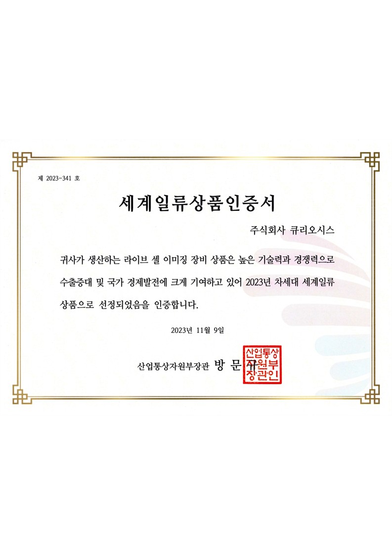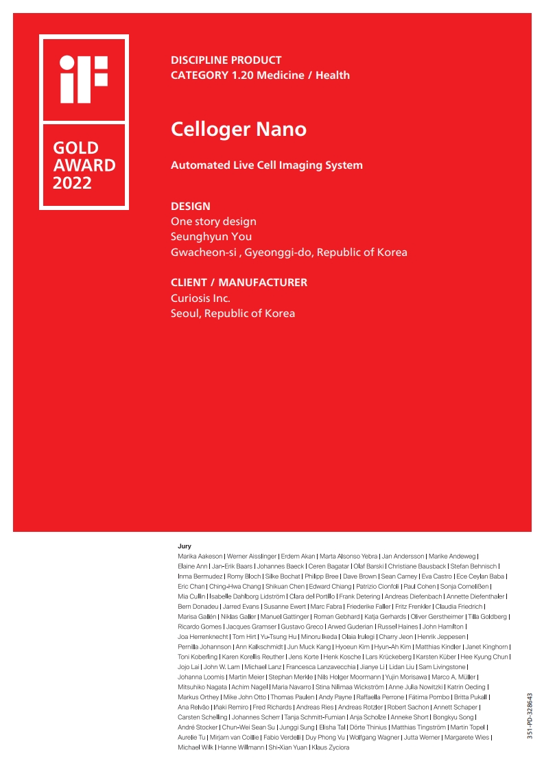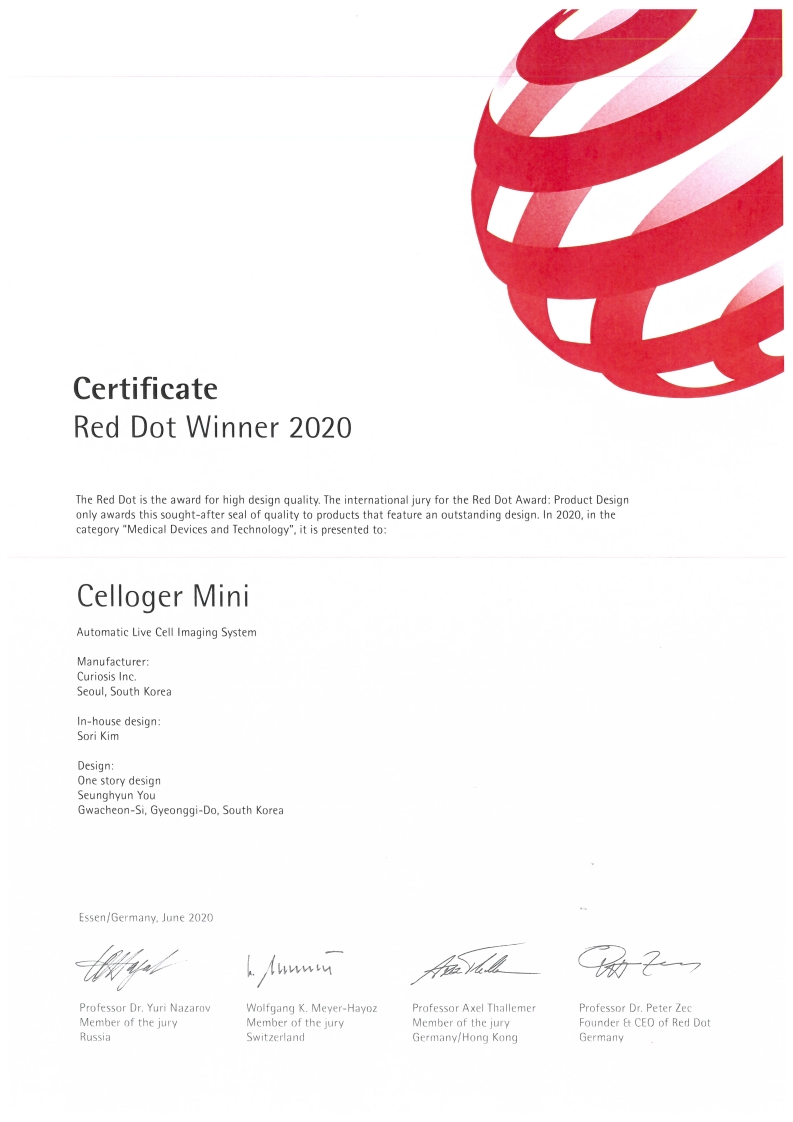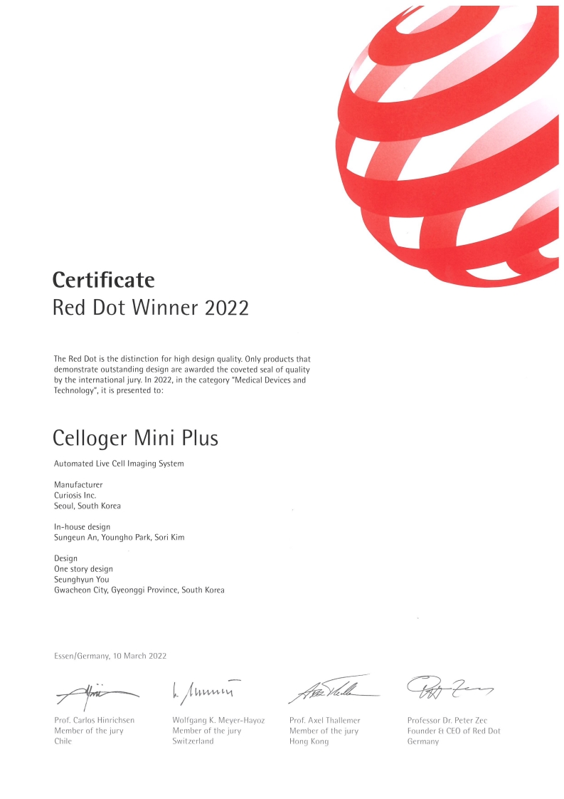 기업인증서기술/IP디자인 기업부설연구소 벤처기업인증 ISO 13485:2016 ISO 9001:2015 가족친화인증서 의료기기 제조업 허가증 소재 부품 장비 전문기업확인서 신기술적용제품 확인서 기술혁신형 중소기업 (Inno-Biz) 확인서 경영혁신형 중소기업 (Main-Biz) 확인서 체외진단의료기기 제조업 허가증 지식재산 경영인증서 기업부설연구소 인정서(용인) 직무발명보상우수기업 인증서 Hi-Seoul 기업 지정서 글로벌 IP스타기업 지정서 NEP 신제품 인증 (MSP®-320) NEP 신제품 인증 (Cellpuri®) 서울시 워라밸 포인트 기업 증서 우수 기업부설연구소 지정서 백만불 수출의 탑 이백만불 수출의 탑 대한민국 일·생활 균형 우수기업 선정서 벤처기업확인서 기족친화인증서 기업부설연구소 서울형 강소기업 확인서 ISO 9001:2015 ISO 13485:2016 Certificate of GMP 의료기기 제조업 허가증 의료기기 제조 인증서 소재,부품,장비 전문기업확인서 NET 신기술 인증(Cellpuri®) 신기술적용제품 확인서 기술혁신형 중소기업 (Inno-Biz) 확인서 경영혁신형 중소기업 (Main-Biz) 확인서 체외진단의료기기 제조 신고증명(MSP®-320) 지식재산 경영인증서 직무발명보상우수기업 인증서 Hi-Seoul 기업 지정서 NEP 신제품 인증(MSP®-320) 글로벌 IP스타기업 지정 확인서 2020 제14회 대한민국 우수특허 대상 2022 한국바이오칩학회 기술상 2022 ICT 특허경영대상 특허청장상 2022 신기술실용화 촉진대회 국무총리 표창 2023 제15회 중소기업 우수 지식재산경영인대회 최우수상 2023 세계일류상품인증서 2023 R&D 100 Awards Winner(Cellpuri®) 2023 R&D 100 Awards Winner(Celloger® Mini Plus) NEP 신제품 인증(MSP®-320) 2024 범부처전주기의료기기연구개발사업 10대 대표과제(MSP®-320) 2024 제59회 발명의 날 산업통상자원부장관 표창 2024 제59회 발명의 날 산업통상자원부장관 표창 2024 제59회 발명의 날 산업통상자원부장관 표창 2024 제71차 대한민국 엔지니어상 2024 바이오미래포럼 과학기술정보통신부 장관 표창 2024 37주차 장영실상 2024 R&D 100 Awards Winner 2024년 산업통상자원부 장관표창 2024 무역의 날 산업통상자원부장관 표창 2025 CES Innovation Award 혁신상 (MSP®-320) 2025 CES Innovation Award 혁신상 (Cellpuri® Series) 2025 과학기술진흥유공 장관표창 제60회 발명의 날 한국발명진흥회 대통령표창 제72차 대한민국 엔지니어상 2025 중소기업 기술·경영 혁신대전 장관표창 2025 세계일류상품인증 2025 바이오산업의 날 산업통상부 장관표창 2025 대한민국 발명특허대전 산업통상부 장관상 2025 범부처 의료기기 R&D 유공 과학기술정보통신부 장관표창 2025 한국생물공학회 혁신기술대상 2024년 산업기술진흥유공 신기술실용화진흥 산업통상자원부 장관표창 백만불 수출의 탑 2023 R&D 100 Awards Winner(Cellpuri®) 2023 R&D 100 Awards Winner(Celloger® Mini Plus) 세계일류상품인증서 2022 한국바이오칩학회 기술상 2022 ICT 특허경영대상 특허청장상 2023 제15회 중소기업 우수 지식재산경영인대회 최우수상 2022 신기술실용화 촉진대회 국무총리 표창 2020 제14회 대한민국 우수특허 대상 2019 Good Design Korea (Celloger® Mini) 2020 Red Dot Winner (Celloger® Mini) 2020 Good Design Award (Celloger® Mini) 2021 iF Design Award (Celloger® Mini) 2021 Good Design Award (Celloger® Nano) 2022 Red Dot Winner (Celloger® Nano) 2022 iF GOLD AWARD (Celloger® Nano) 2022 Good Design Korea (Celloger® Nano) 2022 Red Dot Winner (Celloger® Mini Plus) 2022 iF Design Award (Celloger® Mini Plus) 2022 IDEA Award (Celloger® Mini Plus) 2022 Good Design Korea (Celloger® Mini Plus) 2022 Good Design Award (Celloger® Mini Plus) 2023 Good Design Korea (re:H®) 2024 Good Design Korea (Celloger® Pro) 2024 Red Dot Winner (MSP®-320) 2024 Red Dot Best of the Best (MSP®-320) 2024 IDEA Award (MSP®-320) 2025 iF DESIGN AWARD (MSP®-320) 2025 iF DESIGN AWARD (MSP®-320) 2025 IDEA Award (MSP®-320) 2025 Good Design Award (MSP®-320) 2023 우수디자인(GD)상품 선정(re:H®) 2022 IDEA Award (Celloger® Mini Plus) 2022 Good Design Award(Celloger® Mini Plus) 2022 우수디자인(GD) 상품 선정(Celloger® Mini Plus) 2022 iF Design Award (Celloger® Mini Plus) 2022 Red Dot Winner (Celloger® Mini Plus) 2022 우수디자인(GD) 상품 선정(Celloger® Nano) 2022 Red Dot Winner (Celloger® Nano) 2022 iF Gold Award (Celloger® Nano) 2021 Good Design Award(Celloger® Nano) 2021 iF Design Award (Celloger® Mini) 2020 우수디자인(GD) 상품 선정(Celloger® Mini) 2020 Good Design Award(Celloger® Mini) Silver Prize(중소벤처기업부장관상)(Celloger®Mini) 2020 Red Dot Winner(Celloger® Mini)